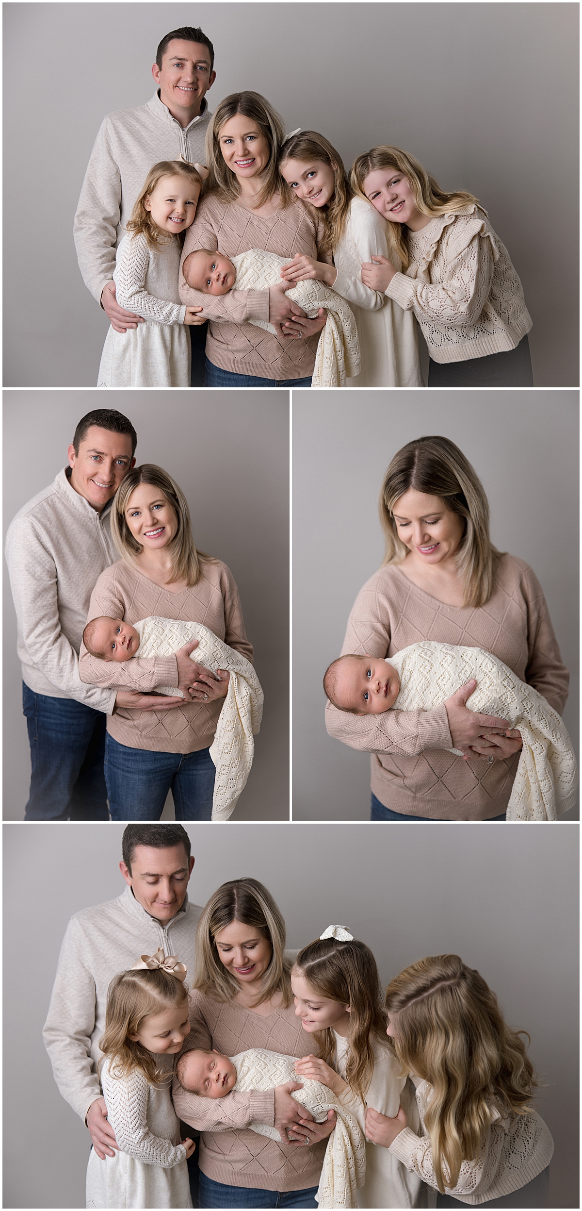 This family chose neutral clothing and soft textures. That keeps the focus on connection. It also helps the gallery feel cohesive, even with several people involved.